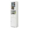 This is a bathroom storage type high cabinet, which is made of high-density panels, high-quality metal handles, and high-hardness installation accessories; the structure design of 2 doors, 1 drawer and 1 layer allows the storage of this cabinet. The space is greatly improved; this high cabinet is widely used, and can be used in the bathroom as a bathroom cabinet, in the dining room as a sideboard, in the study as a bookcase, in the bedroom as a wardrobe, and in the living room and entrance.