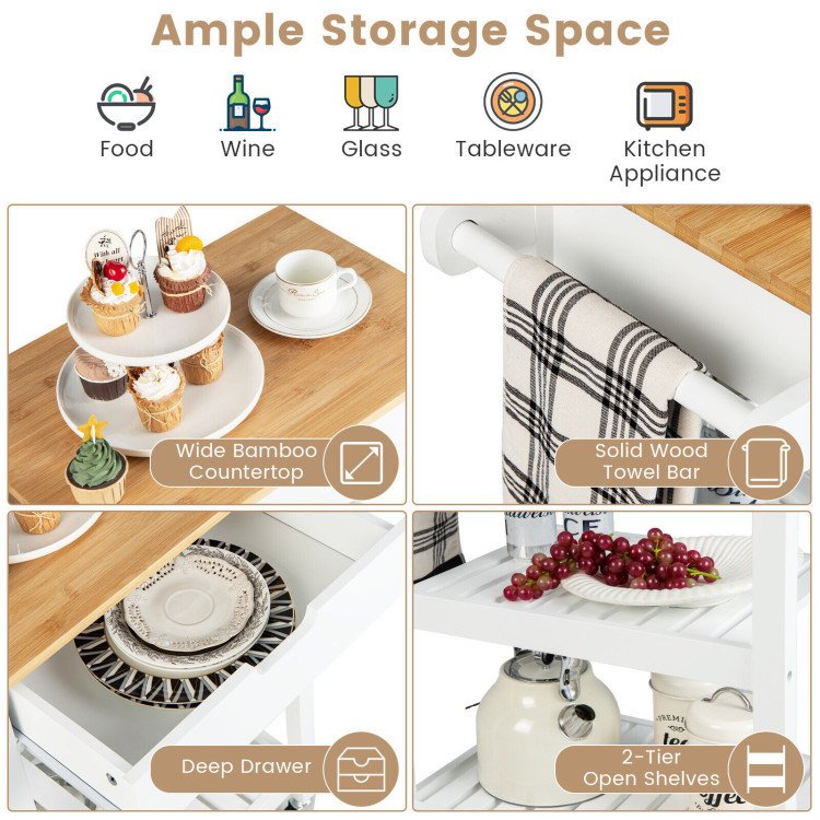 3-Tier Kitchen Island Cart Rolling Service Trolley with Bamboo Top