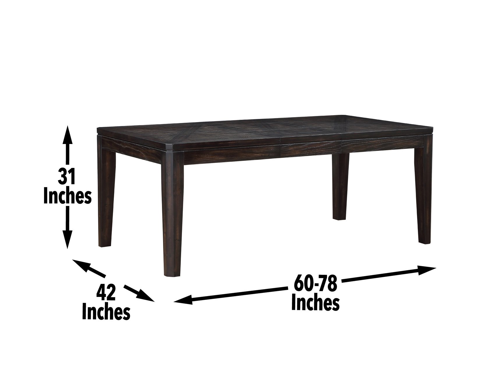 Locking 18″ leaf expands table from 60 to 78 inches to seat up to eight guests