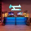 Home > Computer Desk with LED Lights, Office Desk for Small Spaces, Gaming Desk with Reversible Storage Shelves, Rustic Brown