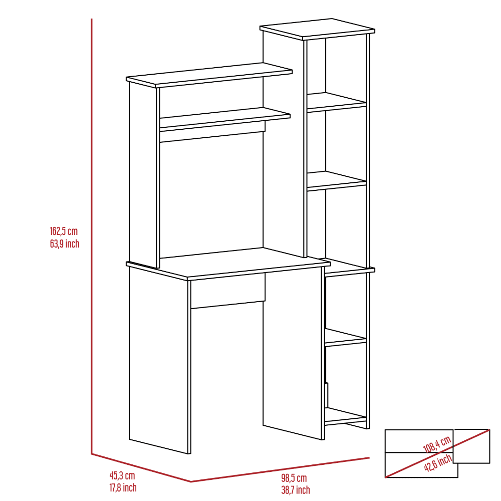 DEPOT E-SHOP Aramis Desk, Five Shelves, Two Superior Shelves, White