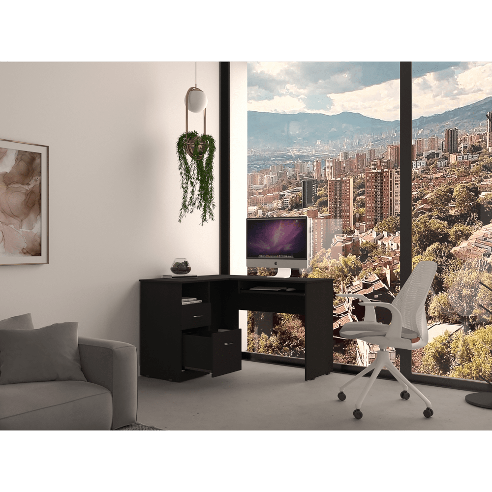 DEPOT E-SHOP Idra L-Shaped Desk, Keyboard Tray, Two Drawers, One Open Shelf, Black DEPOT E-SHOP Idra L-Shaped Desk, Keyboard Tray, Two Drawers, One Open Shelf, Black DEPOT E-SHOP Idra L-Shaped Desk, Keyboard Tray, Two Drawers, One Open Shelf, Black DEPOT E-SHOP Idra L-Shaped Desk, Keyboard Tray, Two Drawers, One Open Shelf, Black