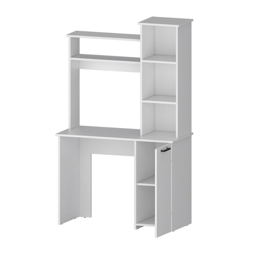 Romance CopyThis desk offers a spacious work area, complete with a convenient hutch for extra storage and three-tier shelves for organization needs. With a lower cabinet featuring a single door and internal storage, this desk neatly conceals oversized items, elevating your workspace with its perfect balance of design and utility.Product DetailsSet includesOne (1) computer deskDImensions64.2 inches high x 38.7 inches wide x 17.7 inches deepFinish colorWhiteNumber of shelves3