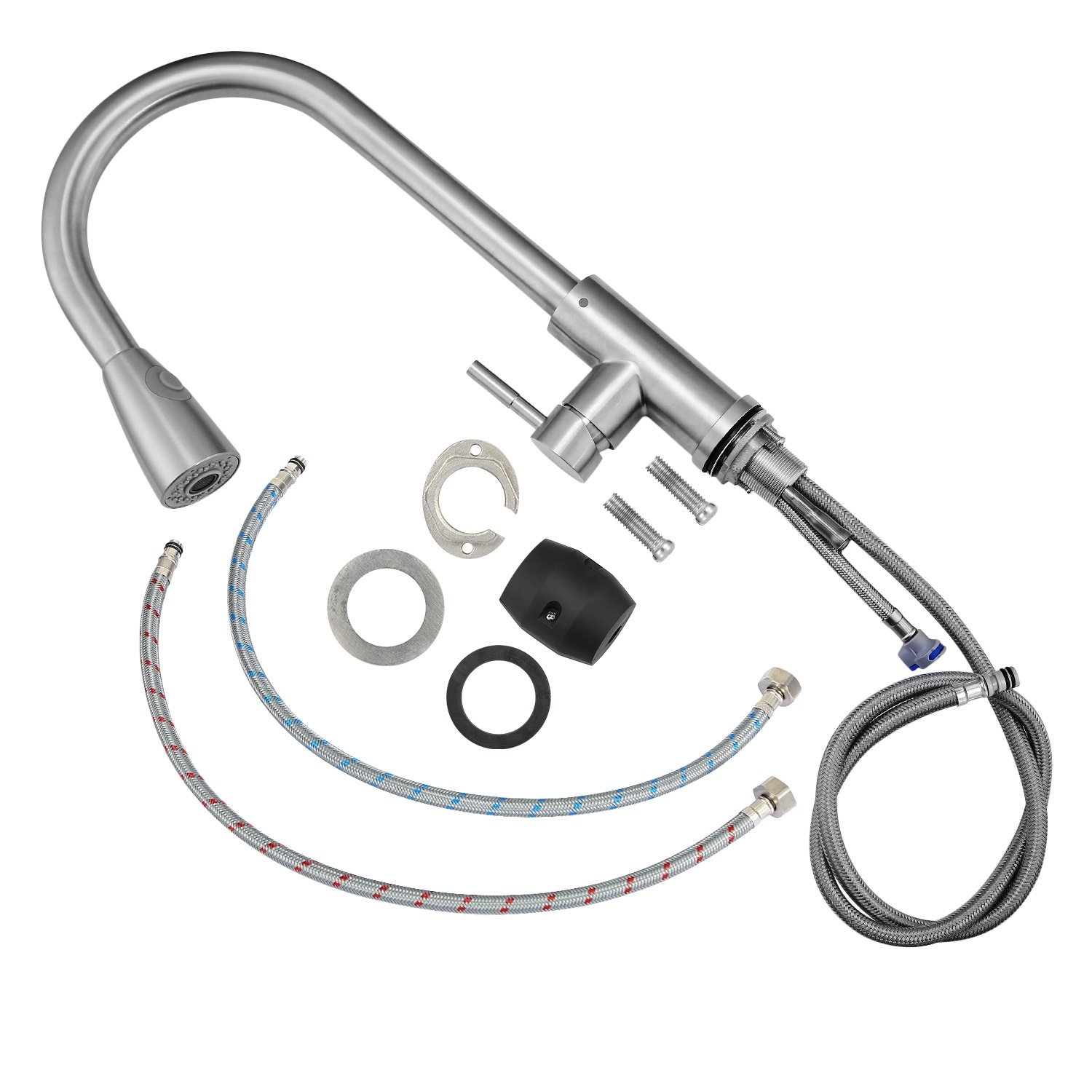Kitchen Faucets Single Handle Kitchen Sink Faucet Brushed Nickel Stainless Steel Pulldown Head Faucet