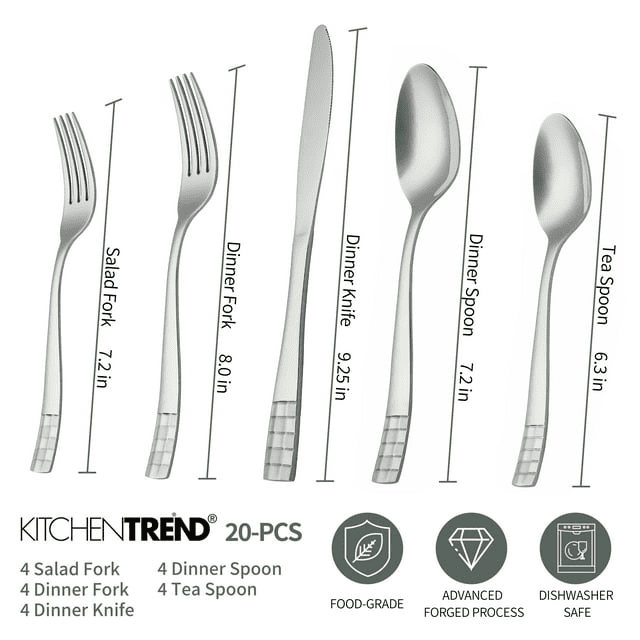 Home > KitchenTrend 20-Piece Silverware Set, Stainless Steel Flatware Cutlery Set, Service for 4 in Dishwasher Safe, Checkmate