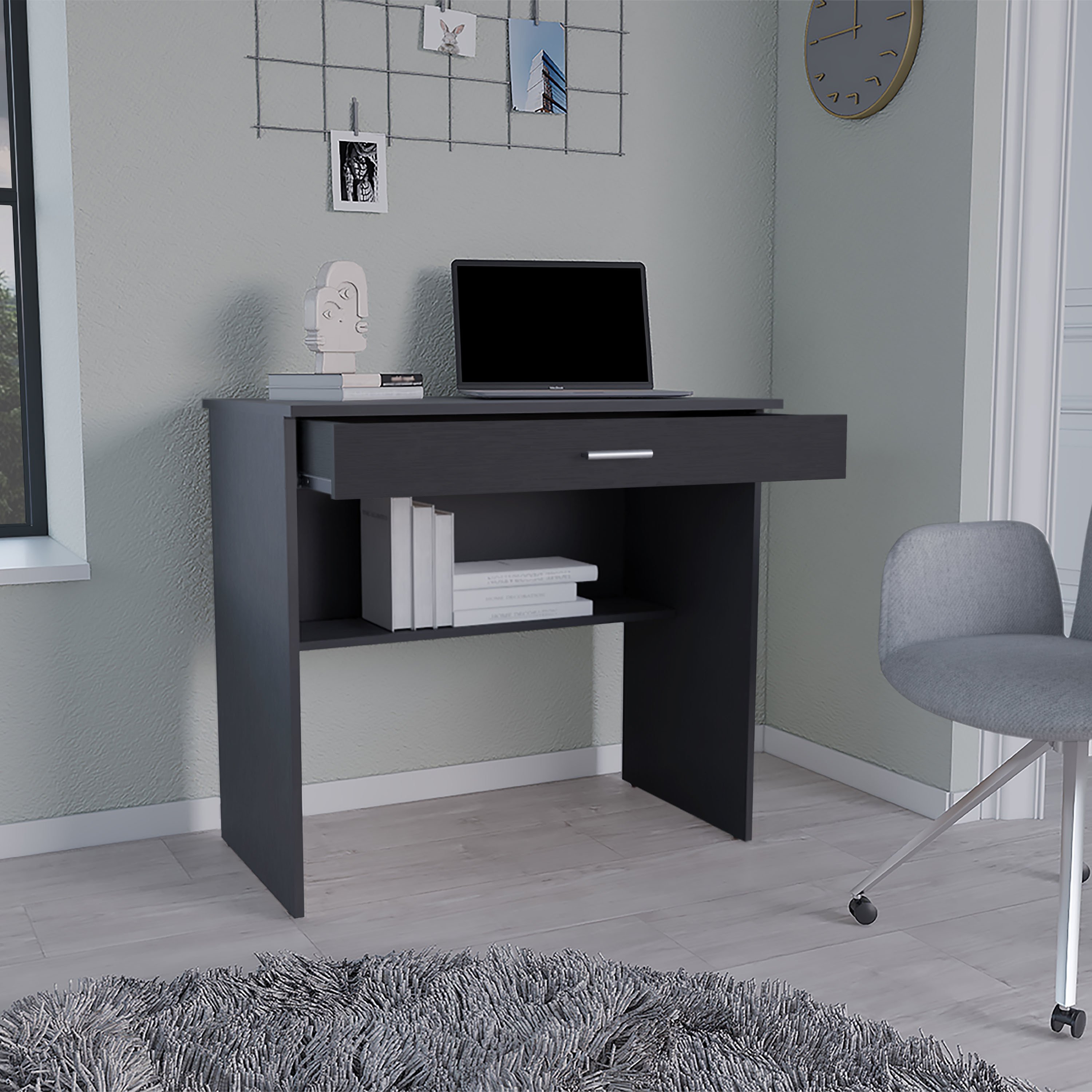 Home > Montana Storage Desk, 28.9H" Spacious Stylish with One Drawer and Shelf, Black