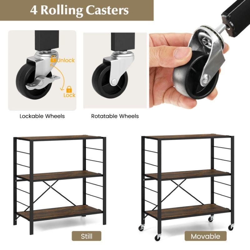 This storage shelf is an ideal choice to meet your daily needs, it serves as a microwave oven stand, bookshelf, baker's rack or office storage rack. Suitable for widely used in the kitchen, dining room, garage, basement and more.