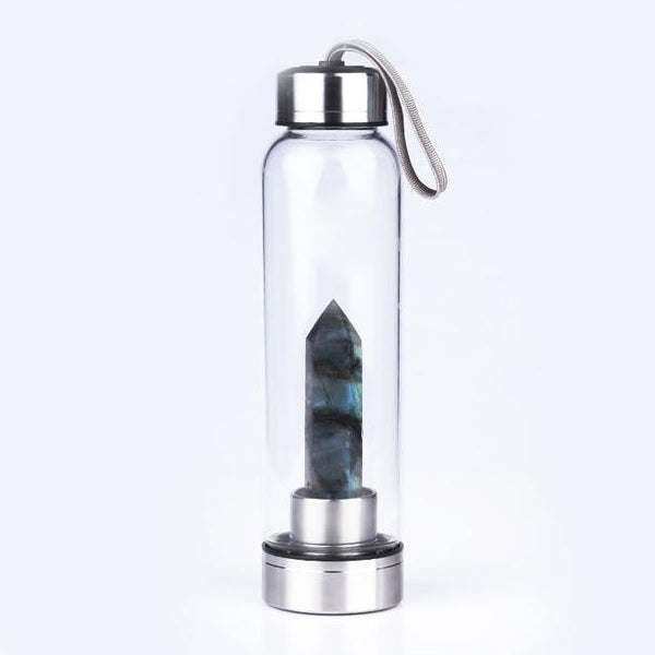 This sleek; 20.4 oz. glass bottle features a stainless steel top and a gorgeous; removable crystal infuser. Add fruits and herbs into the infuser to deliver natural flavor and nutrients directly to your drinking water. This bottle is a must have if you're into thisnew ageof powerful invigorating energy or if you're already enjoying the health benefits of the healing crystals. You'll start to enjoy the positive benefits of drinking crystal energized water in no time! The waterin this bottle will be charged with pure crystal energy throughout the day and drinking this natural crystal-infused water can have healing properties which can benefit in the long run...