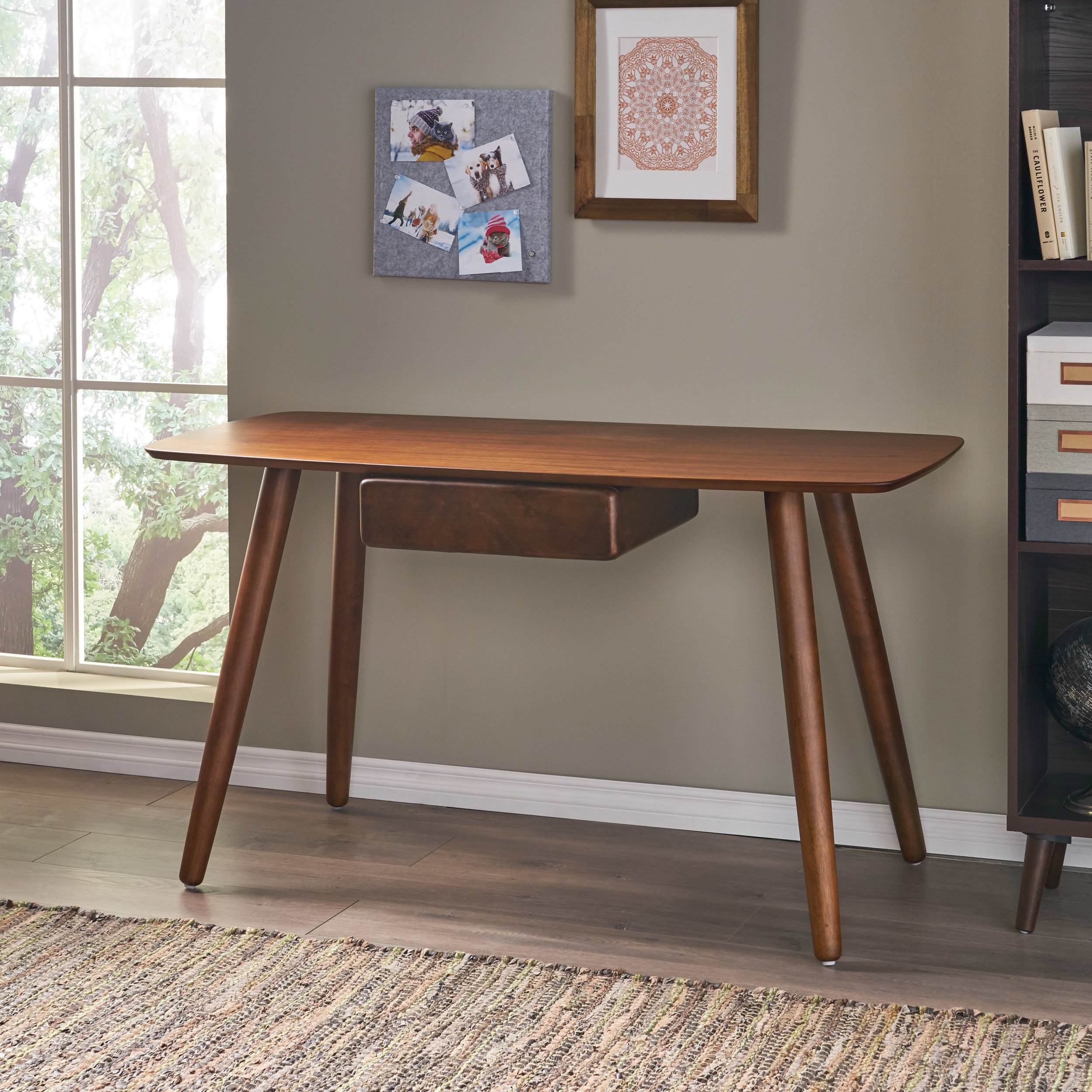 This study desk is the perfect addition to any home office or study room. Complete with a small drawer for pens and pencils, this desk is a stylish way to keep your mind focused on the task at hand. The smooth finish will give you a clean writing surface to work on and the ample desk space gives you the room to spread out with all of your papers and electronics.
